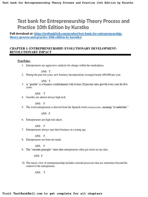 Download online Exam Questions Entrepreneurship Theory Process And Practice PDF